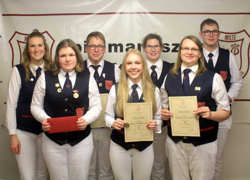 Im weiteren Verlauf der Versammlung ließ Schriftführerin Christina Evermann das vergangene Jahr mit einem bebilderten Rückblick Revue passieren. Stark setzt sich der Verein für seine jungen Nachwuchstalente ein, wie am gemeinsamen Jugendausflug, einem Jugendkonzert oder Spieleabenden deutlich wurde. Kassierer Andre Höckelmann konnte dem Musikverein eine solide finanzielle Basis bescheinigen. Der zurzeit 75 aktive Musiker zählende Verein, wovon sich 14 in der Ausbildung befinden, ist personell gut aufgestellt. Neben dem eigenen Schützenfest und dem Übungswochenende stehen in diesem Jahr wieder zahlreiche Auftritte an. So wird der Spielmannszug das 115. Jubiläum des Spielmannszuges Enniger-Vorhelm und das 100. Jubiläum des Reit- und Fahrvereins Milte-Sassenberg begleiten und nimmt am jährlichen Kreisehrengardentreffen teil. Trotz des eigenen Jubiläums will der Verein auch wieder seinen traditionellen Tanz in den Mai auf dem Milter Schützenplatz ausrichten.
