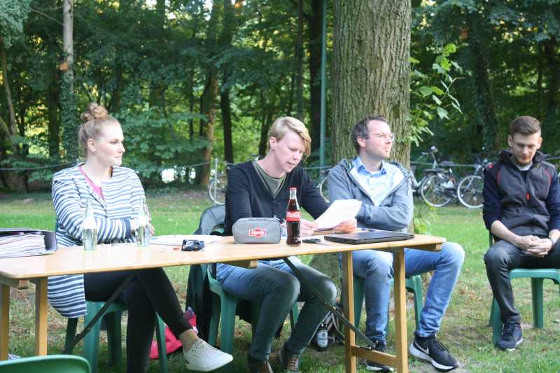 Während der unter freiem Himmel auf dem Schützenplatz abgehaltenen Versammlung wurden der 2. Vorsitzende Andre Höckelmann, die Kassiererin Eva Holtkamp, die Beisitzerin Alina Waldmann und die Jugendvertreterin Marie Pries für eine weitere Wahlperiode in ihren Ämtern bestätigt. Sieben Nachwuchsmusiker erhielten für ihre Teilnahme am D1- und D2-Lehrgang des Volksmusikerbundes eine Auszeichnung. Die Ehrung für langjährige Mitglieder des Vereins wird auf die nächste Generalversammlung verschoben und wurde nur namentlich verlesen. So gehören seit 10 Jahren Carolin Abeck, Marie Pries, Marile Seibring und Verena Volmer dem Spielmannszug an. 20 Jahre dabei sind Anja Höckelmann, Lena Kather, Marion Klinge und Anne Ketteler. Stolze 25 Jahre hält Ulf Borgmann bereits dem Verein die Treue. Als neuer Kassenprüfer wurde Thomas zur Wickern gewählt.
